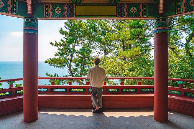 보다 더 탁 트인 바다전망을 담고 싶다면 대웅전 옆 계단을 올라보세요. 분명 부산 혼자 여행에서 아름다운 추억의 사진 한장 남기실 수 있을 겁니다.
