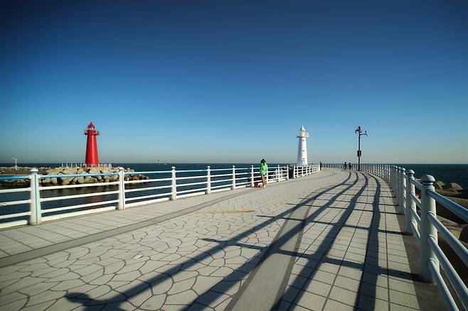 청사포의 상징과도 같은 빨갛고 하얀 쌍둥이 등대는 가을 바다를 즐기기 너무나 좋은 곳이며, 고요함이 상당히 편안하게 다가옵니다. 철썩이는 파도 소리마저 행복하게 들리며, 옹기종기 줄지어 있는 작은 통통배들과 늘어서 있는 그물마저 정겨운 느낌이 들죠.