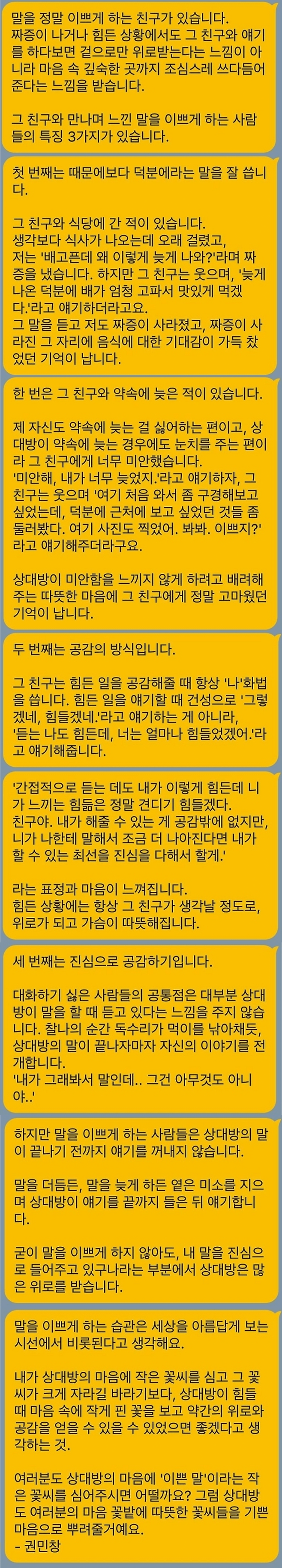 말 이쁘게 하는 친구와 만나며 느낀 특징 3가지