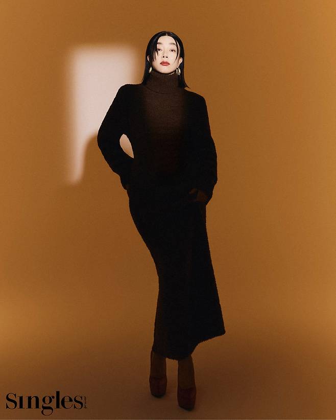모노톤의 브라운 니트와