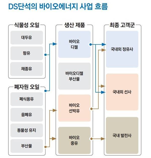 DS단석은 발전용 바이오중유 시장의 강자이기도 하다. 바이오중유는 바이오디젤 생산과정에서 발생하는 부산물이나 음식물 쓰레기 기름(음폐유), 팜 부산물 등이 원료다. 기존 벙커C유 발전설비에서 그대로 사용 가능한 호환성과 안정성을 갖췄다. 바이오중유는 벙커C유 대비 미세먼지, 질소산화물, 온실가스, 황산화물 저감 효과가 있는 친환경 에너지다.