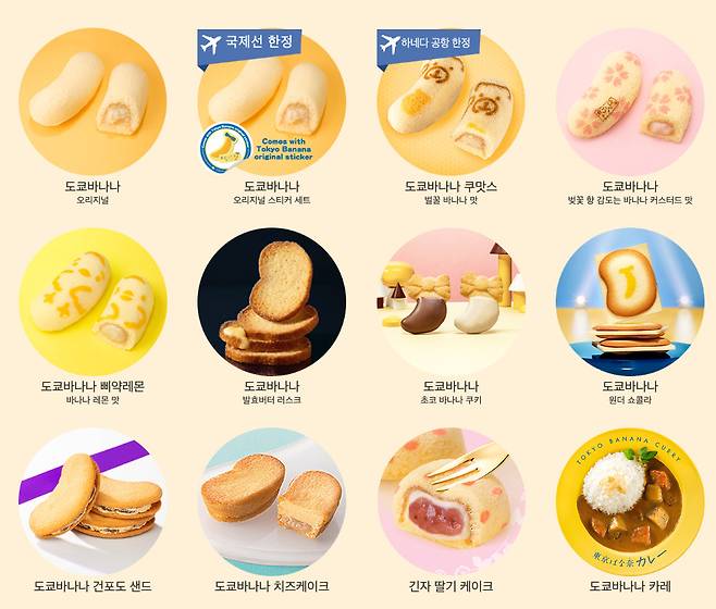 면세점 베스트셀러로 꼽히는 도쿄 바나나는 여전히 사랑받고 있습니다. 촉촉한 바나나 커스터드 크림이 가득한 스펀지 케이크는 누구나 좋아할 수밖에 없죠. 요즘은 도라에몽, 미니언즈 한정판 도쿄 바나나도 인기가 높고, 바삭한 식감을 선호한다면 도쿄 바나나 파이도 좋은 선택입니다.