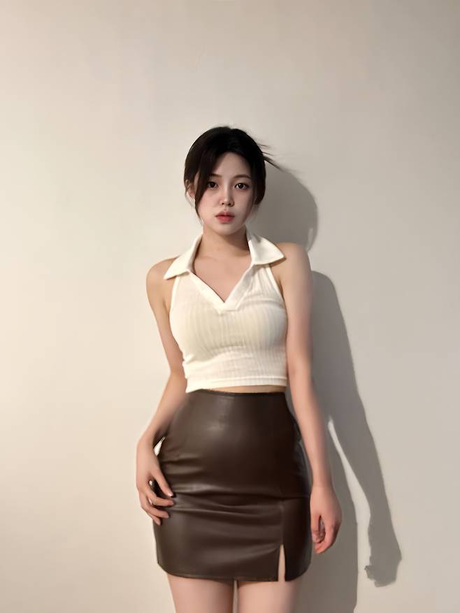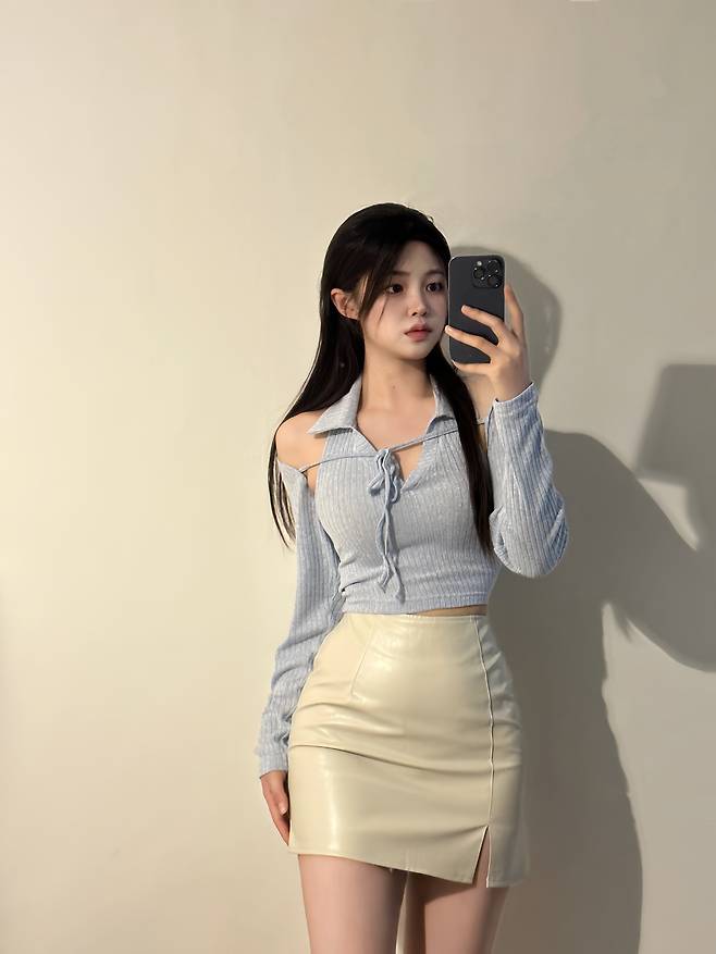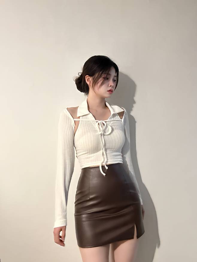 아이보리 레더 스커트를 코디해봤어요