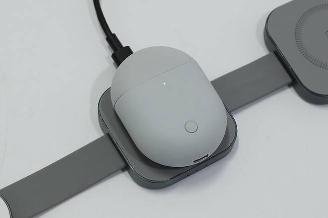 가운데 있는 무선이어폰 충전패드의 경우 최대 5W 충전을 지원하며, 스마트폰 충전패드와 마찬가지로 Qi 충전 표준을 지원하기 때문에 스마트폰을 올려두어도 충전이 가능하다.