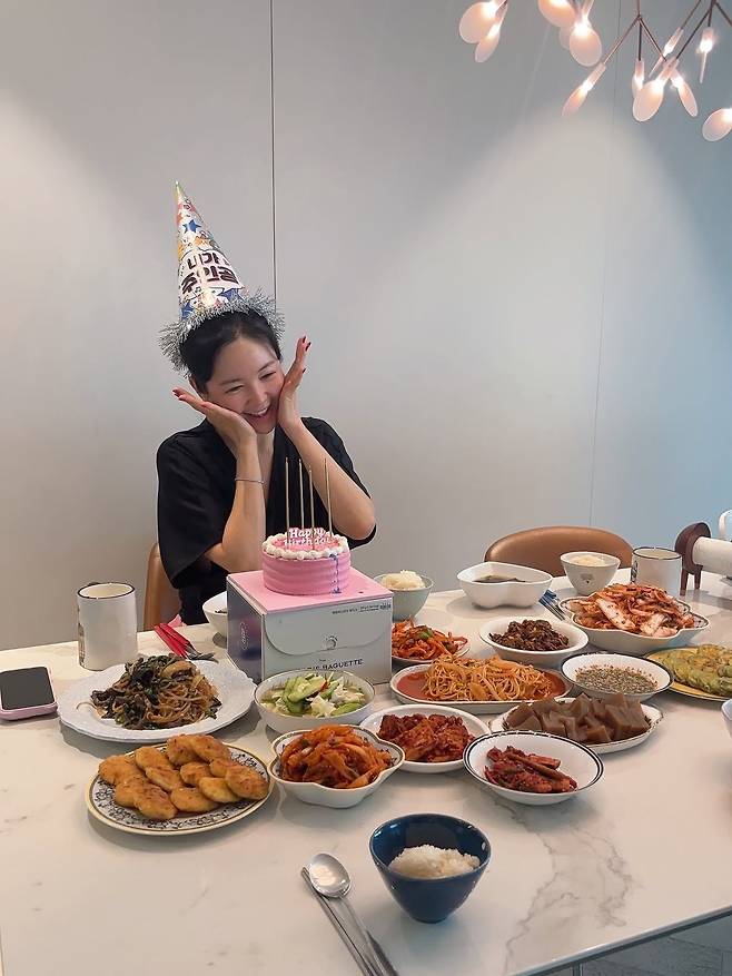 생일 모자를 쓰고 앉은 그의 앞에는 정성스레 차려진 집밥과 핑크빛 케이크가 놓였다.