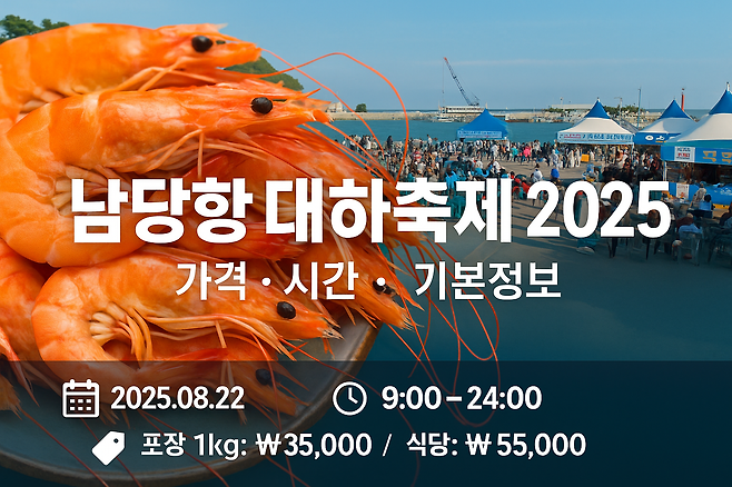 본 글은 2025년 8월 24일 기준 홍성군과 남당항축제추진위원회에서 공개한 자료를 기반으로 작성되었습니다. 행사 일정, 가격, 프로그램은 현장 상황이나 주최 측 사정에 따라 변경될 수 있으니 방문 전 공식 안내를 반드시 확인하시기 바랍니다.