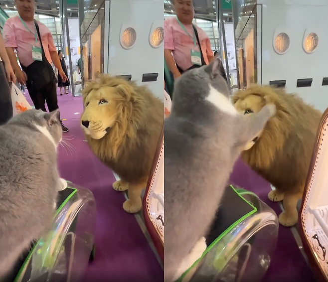 최근 한 온라인 커뮤니티에서 화제가 된 영상이 많은 이들의 웃음을 자아냈습니다. 한 고양이가 캐리어 위에 앉아 긴장한 모습으로 사자 인형을 응시하고 있는 장면이 담겼는데요. 이 고양이는 사자 인형을 마주하며 두 눈을 크게 뜨고, 몸을 움츠린 채로 경계하는 모습이 매우 인상적이었습니다.