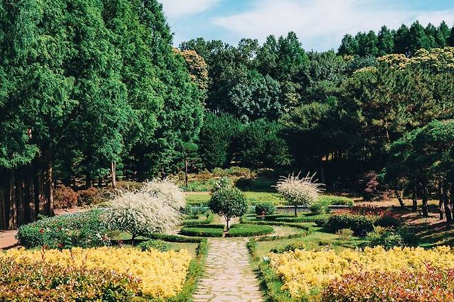 카페도 함께 운영되고 있어, 꽃이 만발한 정원을 바라보며 커피 한 잔을 즐길 수 있다.