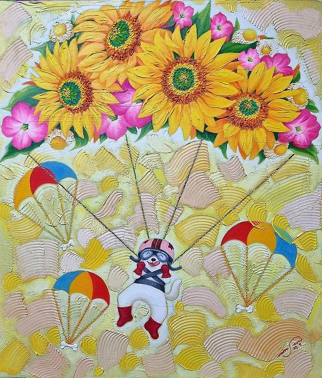김민선 작가는 작품을 그리며 아름다운 꽃들이 흐드러지게 핀 순간의 즐거움과 희망을 전하고자 하는 거죠. 즐거움과 희망을 전하는 작가의 메시지를 직접 보면서 느끼는 건 어떨까요? 특히, 김민선 작가는 모델링 페이스트와 유화 물감을 사용해 작품의 입체감과 깊이감을 연출하여 감성을 한 층 더 높이고 있죠.