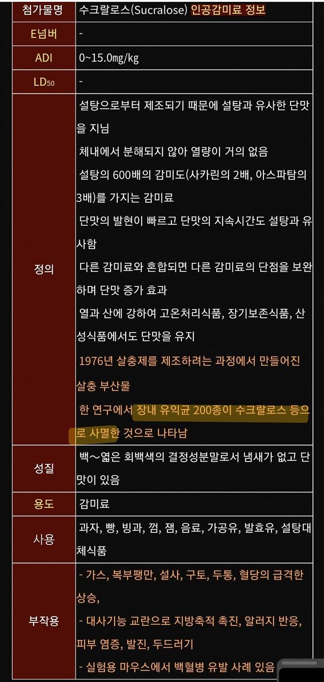 제로음료들 사려고 보니까 수크랄로스 있더라고...