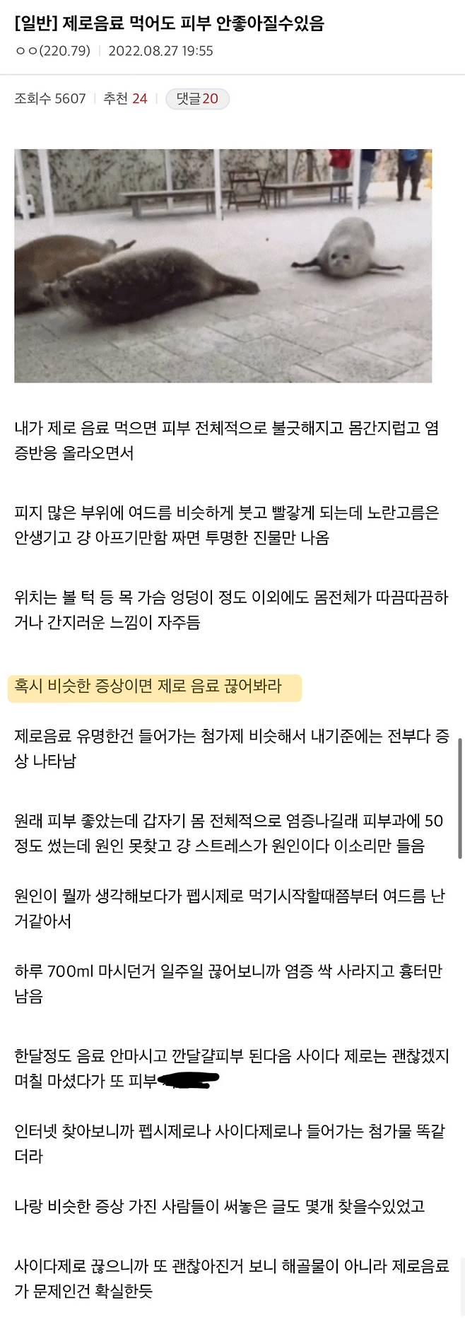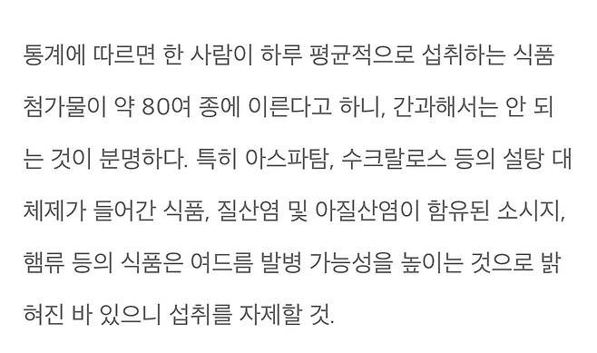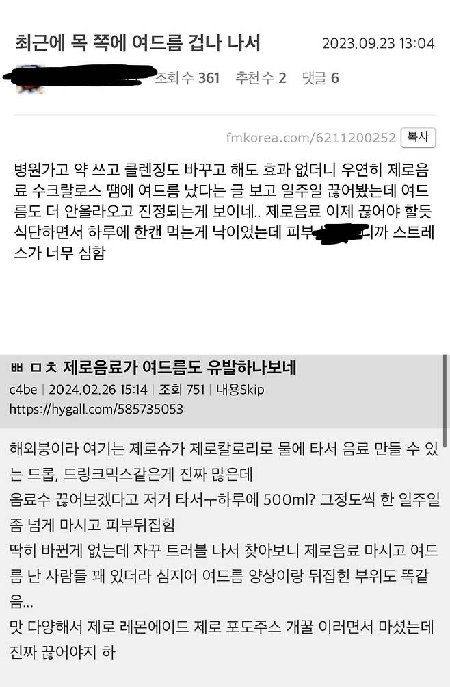 제로 칼로리 대체당 “수크랄로스”를 섭취하고 여드름이 나는 사람들