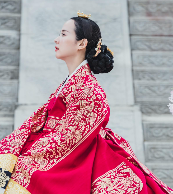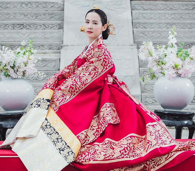 조여정은 우아한 한복 자태로 감탄을 자아내게 합니다.
