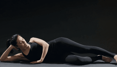 오른쪽 측면을 바닥에 대고 옆으로 누운 상태에서 왼쪽 다리를 공중으로 들어 올렸다가 내립니다. 반복한 후, 반대편으로 돌아누워 오른쪽 다리를 들어 같은 방식으로 운동합니다. 밴드를 허벅지에 착용하면 자극을 더욱 강화할 수 있습니다.