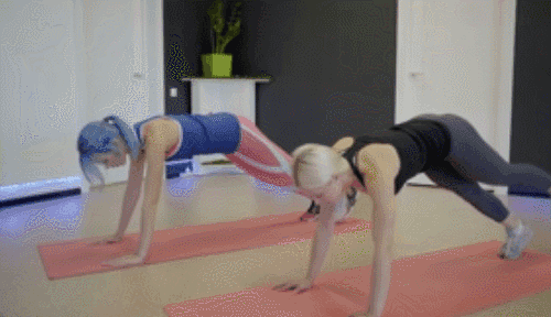 플랭크 기본자세로 매트에 엎드린 상태에서 팔꿈치를 완전히 펴고 어깨 아래에 손을 둡니다. 오른발을 공중으로 들었다가 내리고, 이어서 왼발을 들어 올렸다가 내립니다. 시선은 바닥을 향한 채로 양다리를 번갈아 들어 올리며 반복합니다.