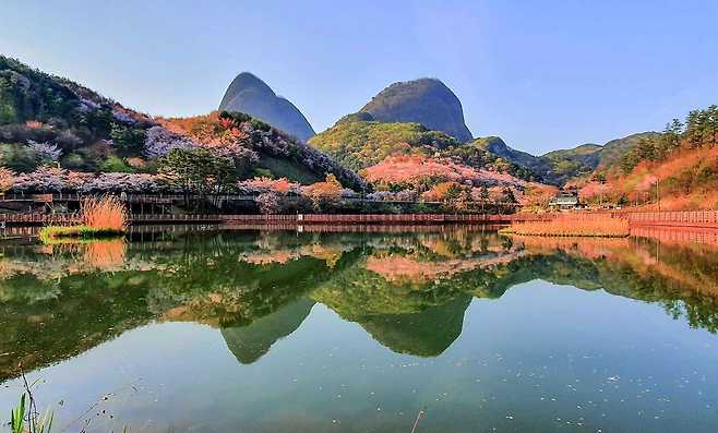 사양동 방죽이라고도 불리는 이곳은 마이산 자락 아래에 자리해, 수면 위로 산의 윤곽이 고스란히 비치는 풍경으로 잘 알려져 있다.