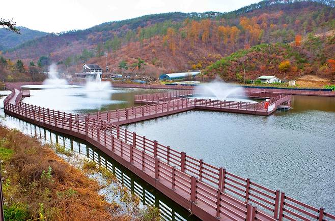 저수지 주변으로는 수변 데크와 생태공원이 조성돼 있다. 산책 데크를 따라 걷다 보면 부유 분수와 함께 탁 트인 수면이 시야에 들어오고, 복잡한 생각 없이 풍경에 집중하기 좋은 환경이 이어진다. 마이산 북부 주차장 인근에 위치해 접근성도 좋은 편이다.