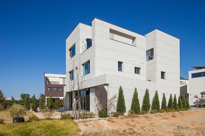 그리고 3층 안방과 옥상 테라스는 외부의 시선을 거르는 액자 형태의 프레임이 그림 같은 전망과 개방감을 선사하며 가족을 위한 안락한 집을 완성한다.