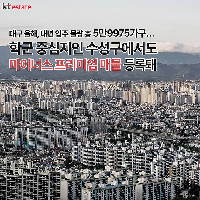 하지만, 비단 마피가 단지 수도권만의 문제만은 아닙니다. 특히 2023~2024년 입주량이 총 5만9975가구(출처: 아실)로 증가한 대구에서도 지난해 12월 말 현재 마이너스 프리미엄 매물을 확인할 수 있습니다.