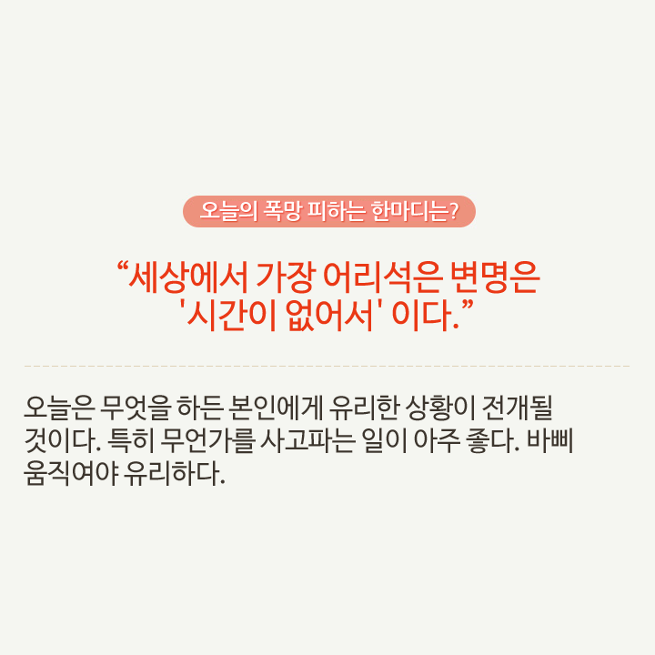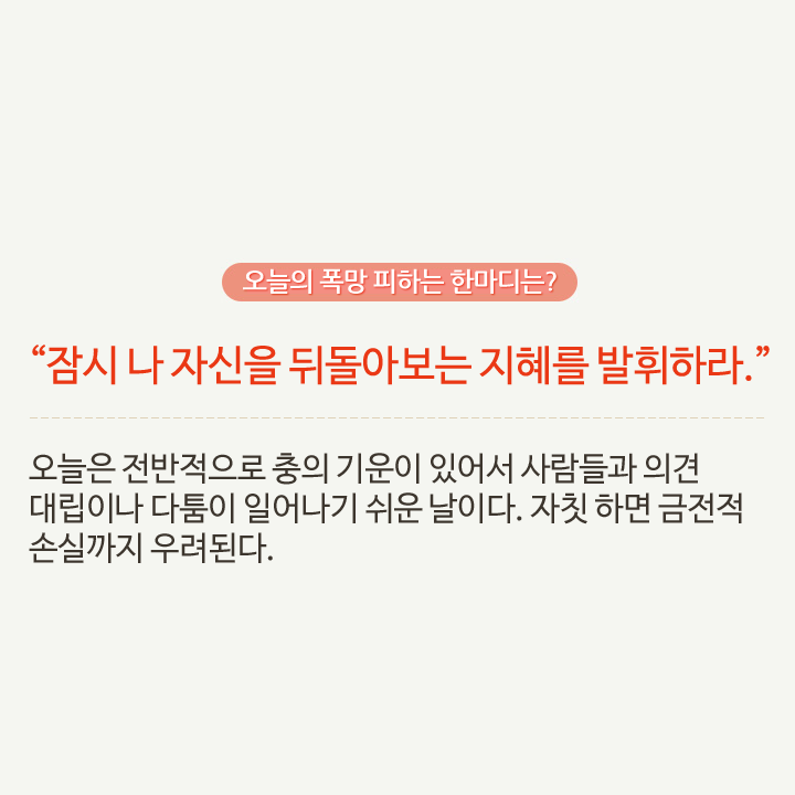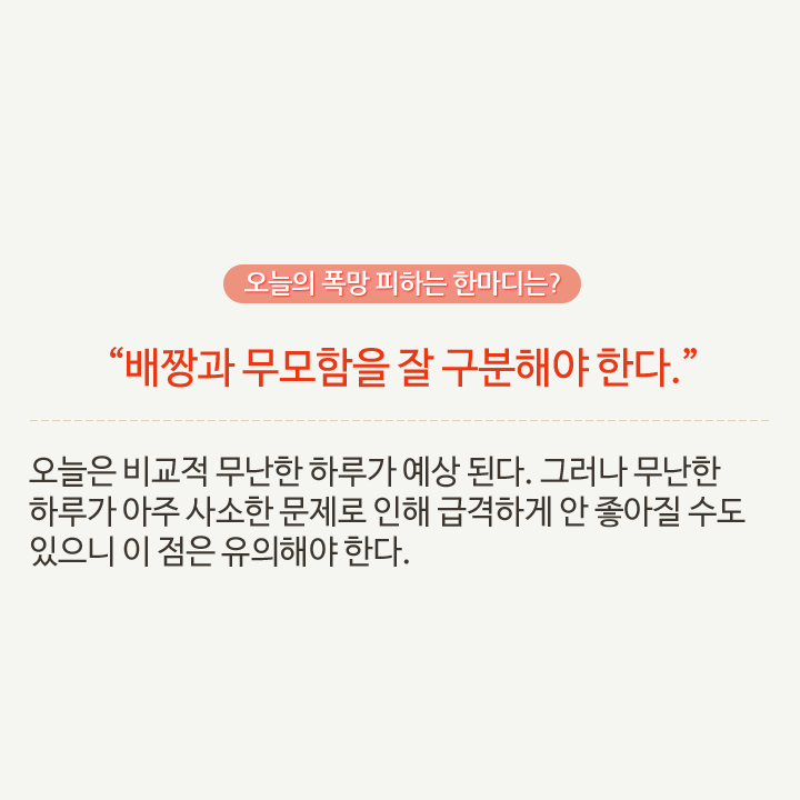 최소한 오늘 폭망은 피하게 해주는 참 고마운 띠별 오늘의 운세! 오늘 최소한 이것만 알면 폭망할 일 없어요.