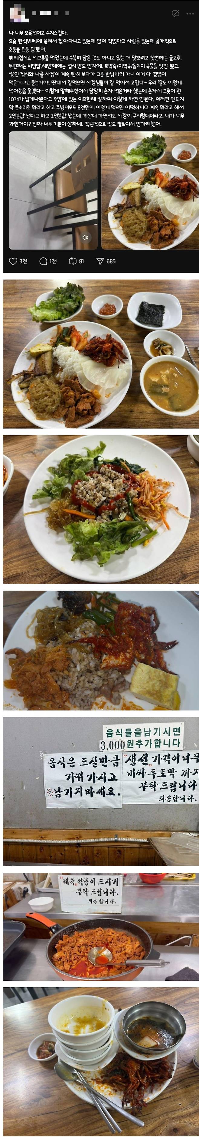 한식 뷔페에서 많이 먹었다고 혼난 여자
