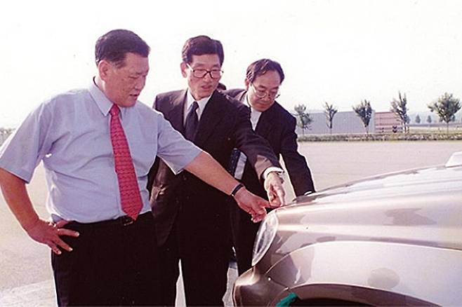 당시 현대차는 정세영 회장이 키운 이미지가 매우 짙었기 때문에, 정주영 선대회장 역시 선뜻 정몽구 회장에게 기업을 물려줄 수 없는 상황이었다. 이에 정주영 선대회장은 1980년대 후반 현대차를 꽉 잡고 있던 정세영 회장을 견제하기 위하여 완성차 사업 분야를 위한 신규 투자 지원에 나섰다. 이때 정몽구 회장은 정주영 선대회장의 지원에 힘입어 사륜구동 스포츠실용차(SUV) 개발에 착수했다.