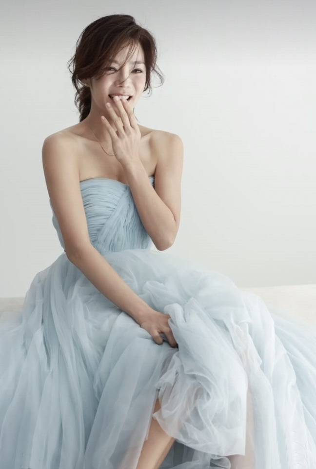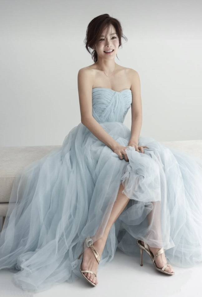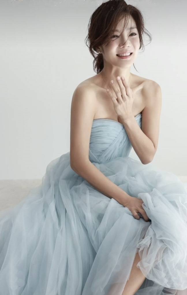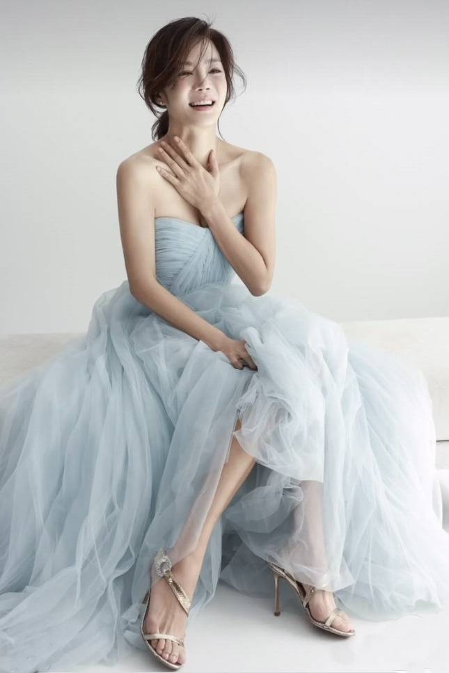 채림은 은은한 하늘빛의 스트랩리스 드레스로 우아하면서도 신비로운 분위기를 연출했습니다.