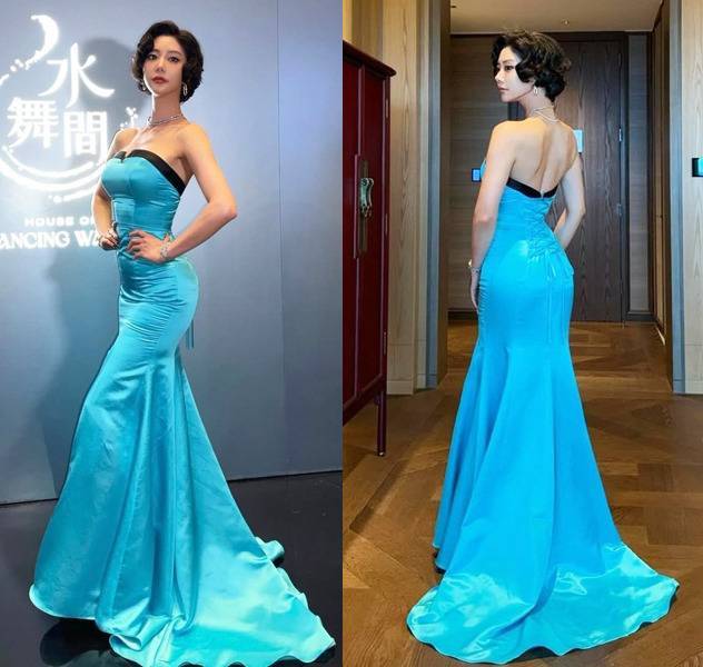 물결처럼 찰랑이는 실키한 텍스처의 파란 머메이드 드레스를 착용한 모습으로 등장해 시선을 집중시켰습니다.