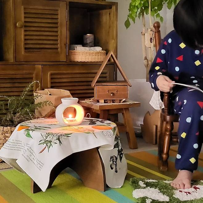 그럴 땐 목제 소품을 활용하거나 실내에 화분, 나무, 숲의 그림을 두는 것이 좋은 보완 방법이에요.