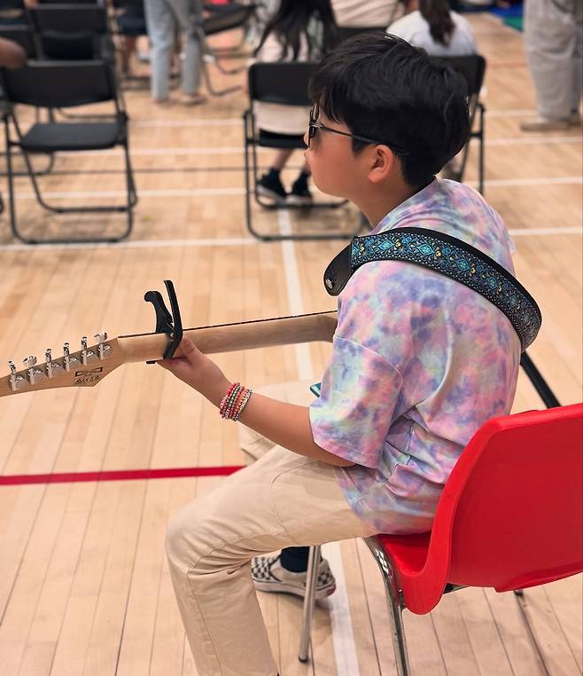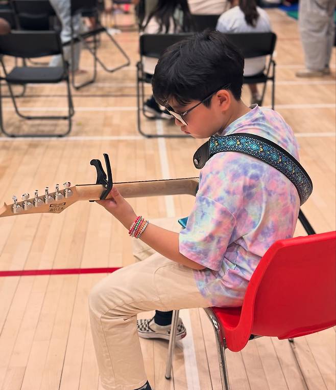 사진 속에는 아빠를 똑 닮은 비주얼을 자랑하며 폭풍성장한 김태우의 막내 아들 해율 군의 모습이 담겨있다. 특히 이때 베이스를 연습 중인 해율 군의 모습이 시선을 단번에 끈다. 아빠 김태우를 꼭 닮아 남다른 음악적 재능의 소유자였던 것.