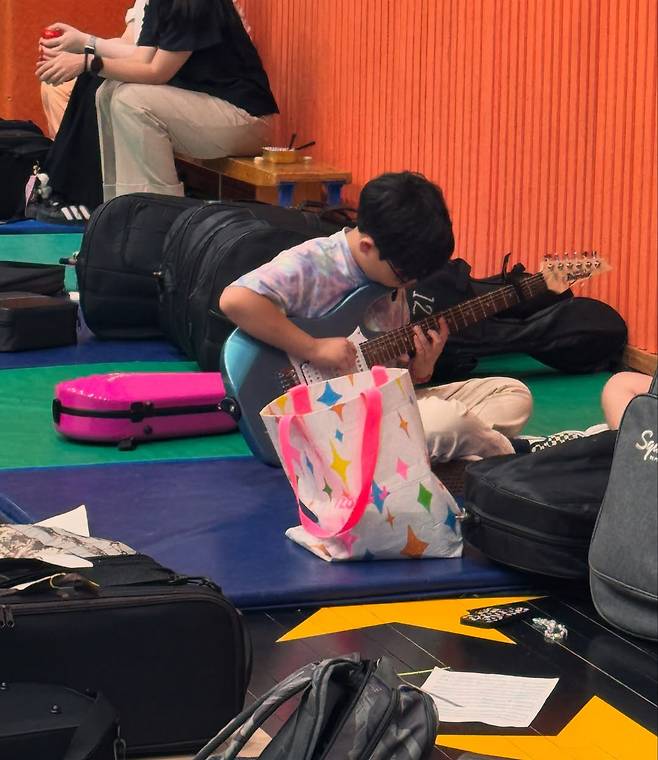무대를 앞두고 긴장한 듯한 표정의 해율 군. 이어 손에서 베이스를 놓지 못한 채 계속해서 연습에 집중하고 있는 모습이 시선을 집중시켰다.