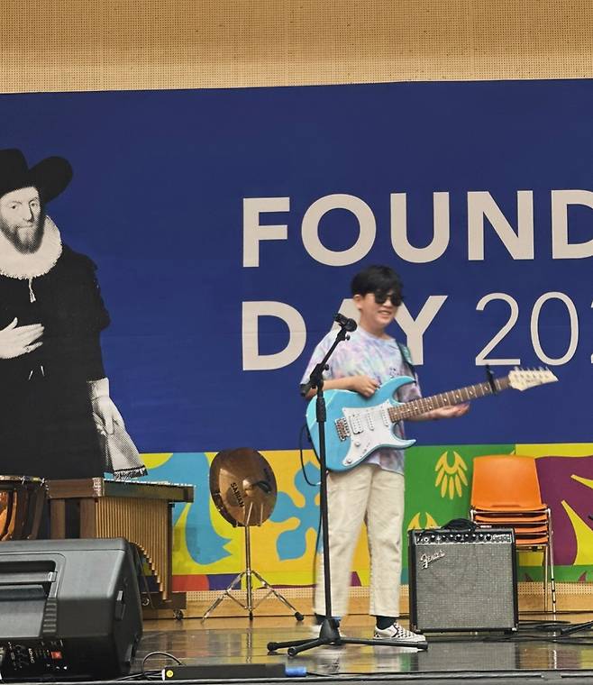 김애리 씨는 "무대가 긴장이 되었는지 공연 한 두시간 전부터 오로지 연습만 해"라며 아들의 모습에 웃었다. 이어 "작년에 이어 올해도 2회 연속 공연하는 아이들. 작년 첫 공연 때보다 뭔가 무대에서의 여유로움도 느껴지고 Y5 다섯 친구들이 무대를 찢었다"면서 "각자 연습에 합주에 열심히 한 보람된 날"이라며 무대 위 아들의 모습에 감격했다.