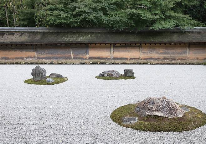 교토 서부에 있는 오래된 사찰 료안지의 정원은 일본 카레산스이식 정원의 최고봉으로 손꼽힌다. 회백색 자갈이 단정하게 깔린 바탕 위에 크고 작은 바위가 기묘하게 배치되어 있다. 바위들이 규칙성 따위는 그다지 고려되지 않고 그냥 무작위로 놓인 것만 같지만, 그 무심한 배치와 단조로운 색채가 오히려 무한한 상상력을 자극한다.