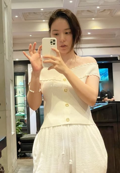 어깨선을 강조하는 디자인 덕분에 더욱 여성스러운 분위기를 연출할 수 있으며, 따뜻해지는 계절에 어울리는 감각적인 선택으로 눈길을 끌었다.