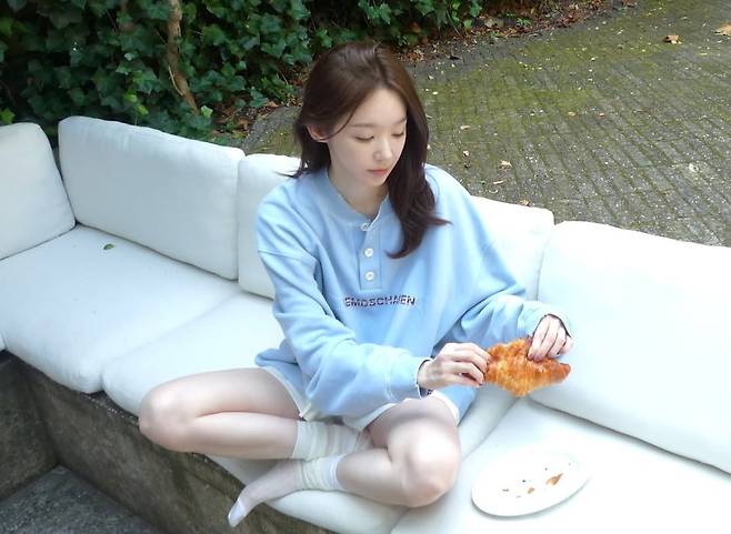 하늘색 오버핏 맨투맨에 화이트 쇼츠. 지극히 평범해 보이는 이 조합이 그녀를 만나자 '가을의 시작을 알리는 가장 힙한 OOTD'가 되었다.