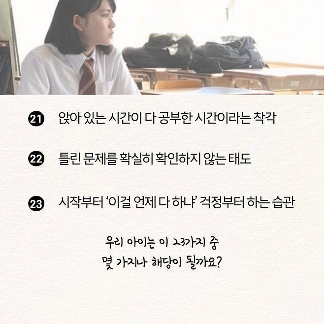 중학생이 되기 전 꼭 고쳐야 하는 공부 습관 23가지