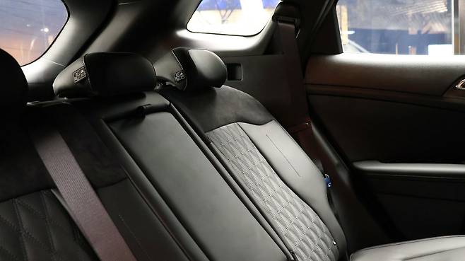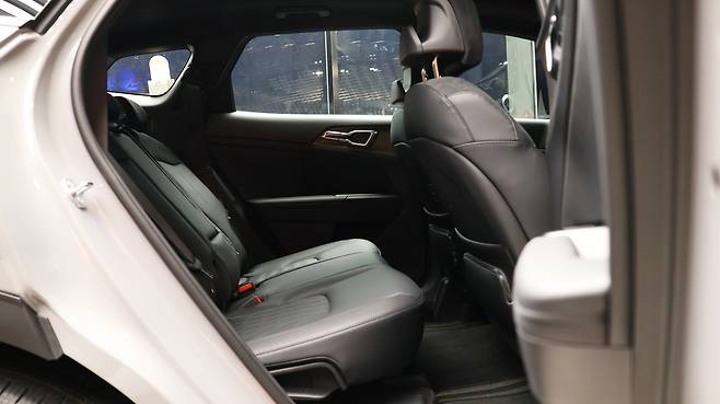 여유로운 공간성을 보여주는 2열 공간이다. 넉넉한 공간의 레그룸을 갖추고 있으며, 특히나 헤드룸의 여유가 있다. 수동식 시트 리클라이닝의 범위가 꽤나 자유로운 편이다. 프리미엄 패키지로 적용된 시트의 퀼팅 패턴이 나름의 고급스러움을 지닌다. 편의 장비는 2열 에어벤트와 암 레스트, 시트 열선, 그리고 시트백 포켓으로 구성되었다. 파노라마 선루프의 면적도 상당히 넓다. 그리고 차체 전장대비 레그룸보다 트렁크 공간이 특히 확장되어 있다. 매트 아래 잔여 공간은 물론, 폴드& 다이브 기능으로 평탄한 리어 시트 폴딩이 가능하다.
