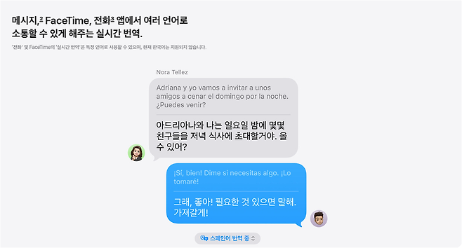 ▪️메시지, 전화, FaceTime에서 다국어 번역 지원 (한국어 일부 지원)