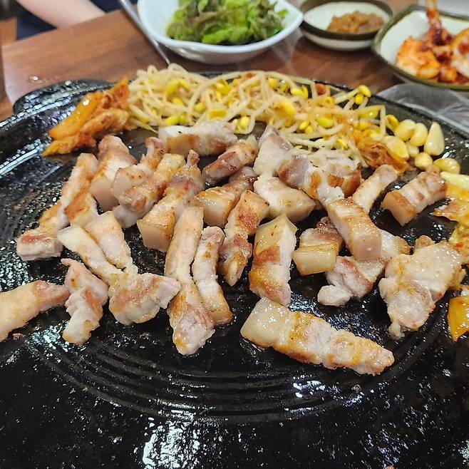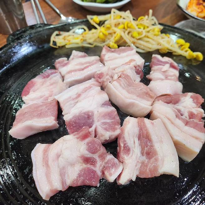 삼겹살 12,000원, 갈비수육(중) 36,000원, 김치찌개 10,000원