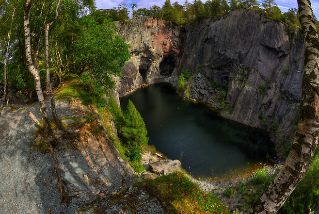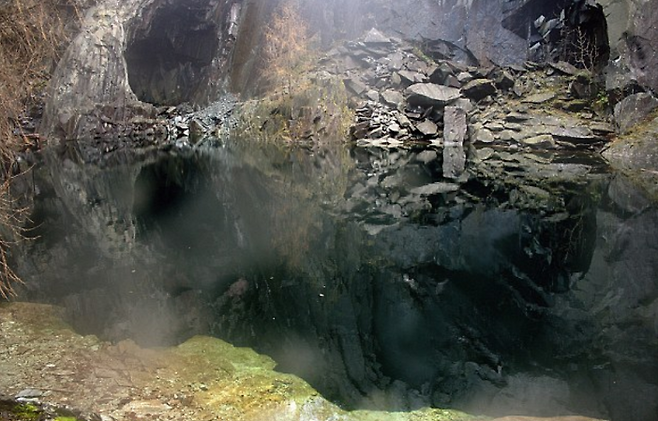 사진 작가 피터 바슬리는 호지 클로즈 채석장의 전경사진을 담아냈고 집으로 돌아와 사진을 살피다가 특이한 사진을 발견했습니다. 사진은 채석장의 모습이 호수 수면에 반사된 모습으로, 사진을 90도 회전해보면 마치 거대한 해골의 모습을 하고 있었는데요.