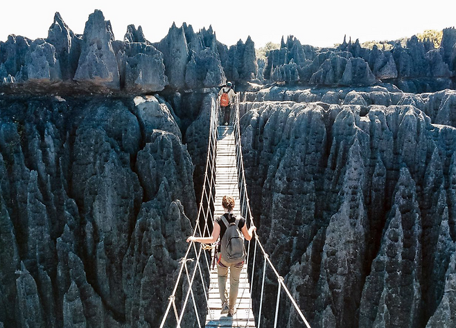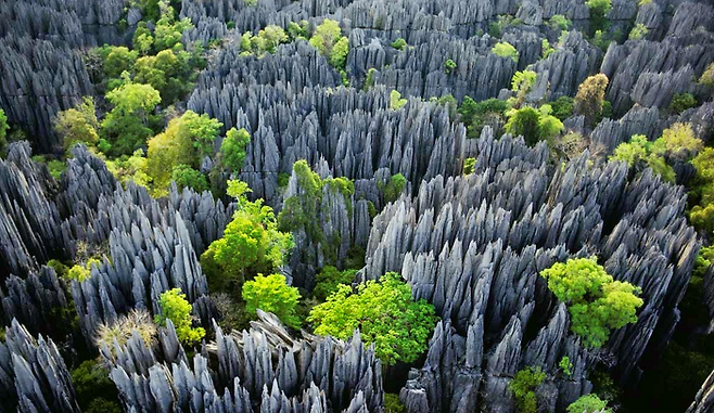 마다가스카르 서쪽에 위치한 친지 데 베마하라 자연보호구역은 유네스코 세계자연유산이기도 하지만 지구상에서 가장 위험한 장소이기도합니다. 이곳에는 몇 만년동안 비와 바람이 깍아낸 날카로운 석회암 암봉과 호수, 맹그로브 숲, 그리고 멸종위기에 있는 여우원숭이 및 새들이 살고 있습니다.