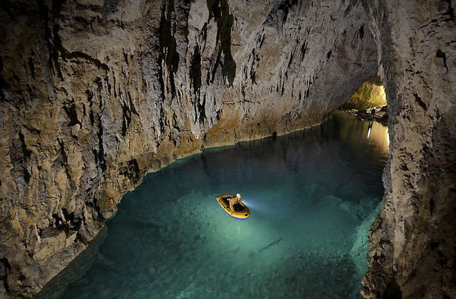 동굴 바닥까지 내려가려면 수직으로 깊게 뻗은 구멍, 좁고 구불구불한 통로, 미끄러운 벽에 매달려가야만 합니다. 하지만 동굴의 바닥에 도착하면 한없이 맑고 투명한 오아시를 연상케 하는 호수를 볼 수 있습니다.
