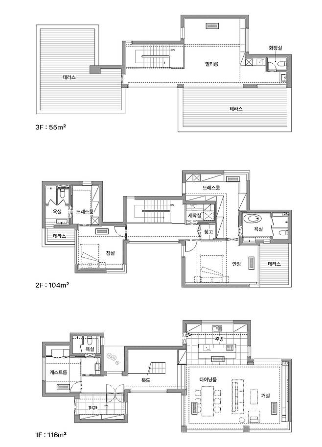 세 가족의 취향을 꼼꼼하게 담아낸 집.