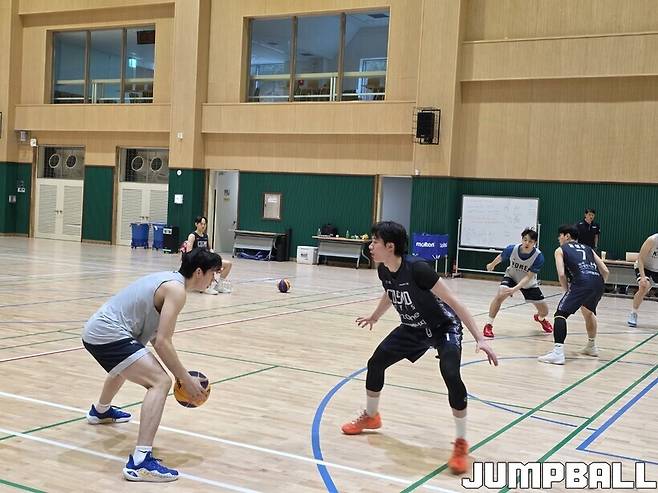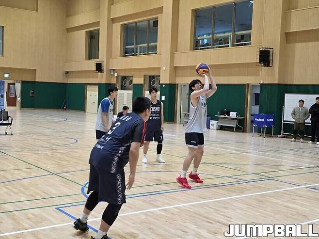 실전 같은 훈련의 파트너는 ‘3X3 올팍투어’ 2년 연속 챔피언 코스모다. 엘리트 선수가 아닌 일반인 출신으로는 처음으로 KBL에 입성한 정성조가 있던 팀이다. 2025 아시아컵 3X3 대표 윤성수가 뛰고 있는 팀이다.