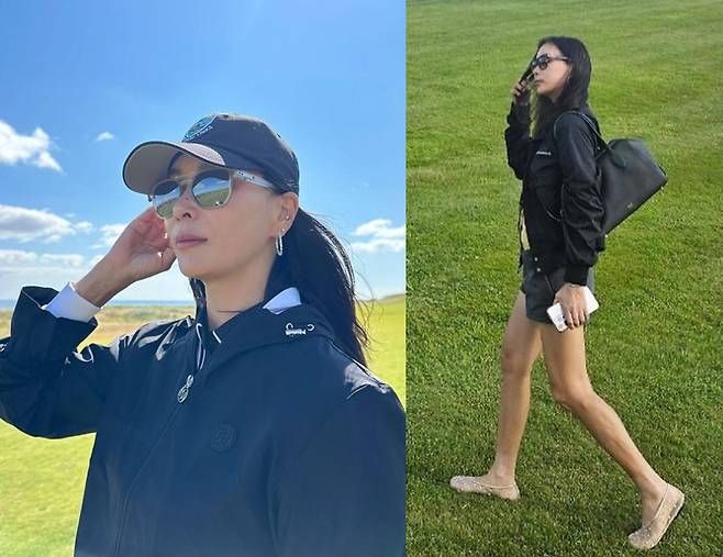 또 고소영은 블랙 쇼츠를 매치해 다리를 길고 슬림해 보이게 하며 활동적이고 경쾌한 멋스러운 스타일링을 완성했습니다.