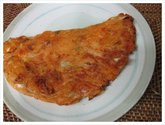 이렇게 만든 김치전은 먹고 나서 속이 편합니다.