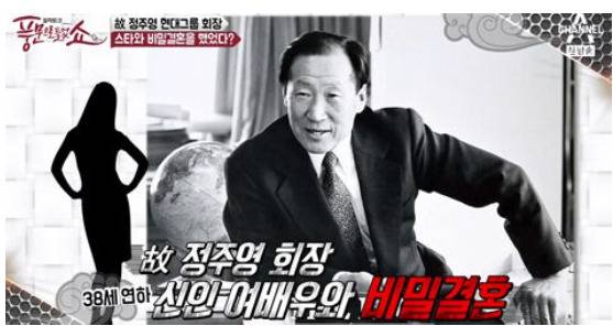 또 "김경희의 증언에 의하면 비밀 결혼을 했을 때 어떻게 했냐? 고 묻자 정주영 회장이 김경희를 데리고 부모님의 무덤에 가서 인사를 했다고 한다. 근데 결혼 후 충격적인 사실이 밝혀진다. 알고 보니 고 정주영 회장이 유부남이었고, 자녀까지 있다는 거를 김경희가 TV를 보고 확인하게 된다"라고 전해 놀라움을 안겼다.