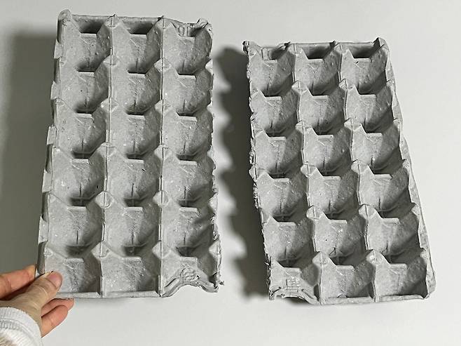 계란판은 외부 충격을 흡수해 파손을 막아줄 뿐만 아니라 종이 재질이 급격한 온도 변화를 완충해 계란 보관함으로 쓰기에 이만한 게 없습니다. 만일 위생이 걱정된다면 계란판 앞뒤로 소독수를 뿌린 후 말린 다음 쓰시면 됩니다.