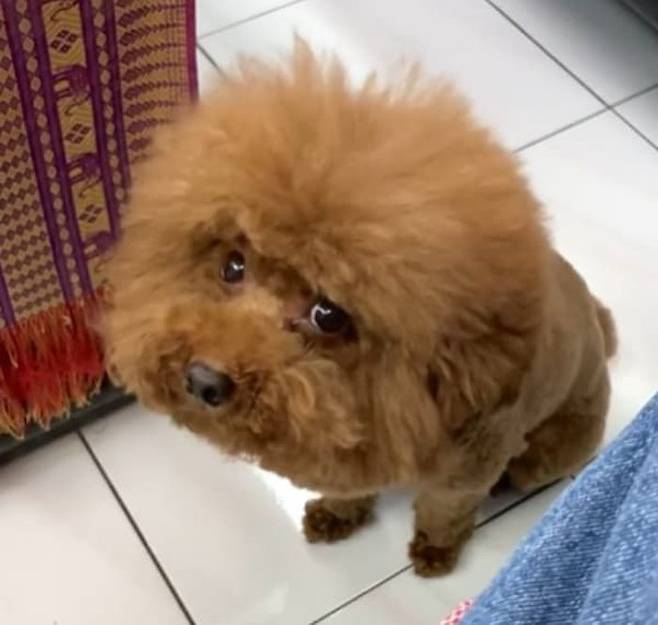 나라 잃은 듯한 표정을 지어 보이면서 집사를 바라보는 푸들 강아지. 조금이라도 건드리면 눈물을 쏟아낼 것처럼 보이는 이 상황 너무 귀여운 것 아닙니까.