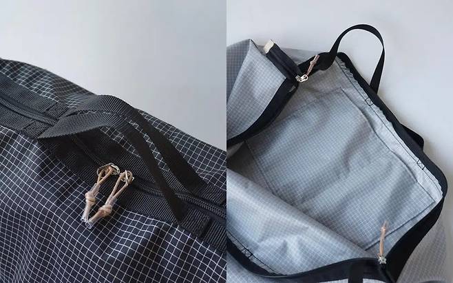 지금 소개하는 위켄드 백은 그리드(Grid) 패턴이 적용됐습니다. 그리드 패턴은 아웃도어 제품에서 흔히 보이는 격자 무늬 패턴을 의미합니다. 여러 개의 가방을 써 보니 오히려 이렇게 패턴이 들어가 있는 것이 고유의 ‘맛’이 나기도 하더라고요. 패턴 특성상 쉽게 해지지 않다 보니 여기저기 긁힐 때도 크게 신경 쓸 일이 없긴 합니다. (아웃도어 제품에 많이 적용하는 이유이기도 합니다.)
