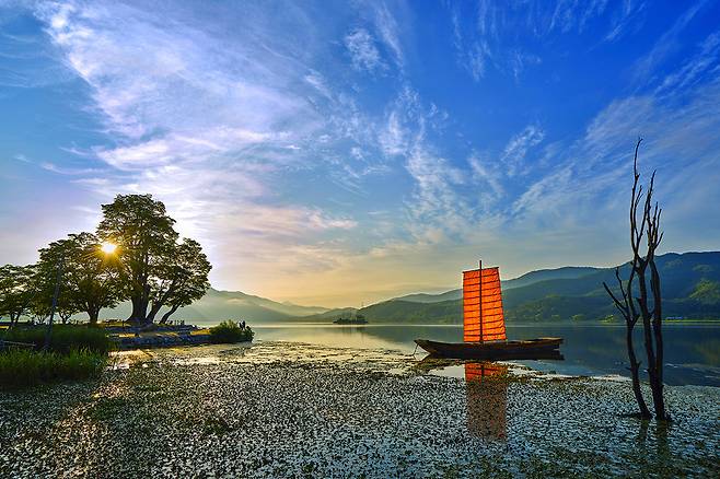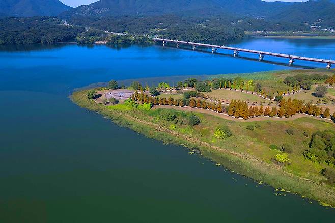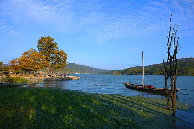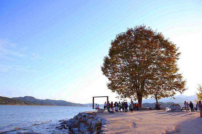 느티나무 주변으로는 물레길이 이어져 있어 천천히 걸으며 자연의 소리와 강바람을 온몸으로 느낄 수 있습니다. 특히 가을이 되면 단풍이 물들어 마치 한 폭의 그림 같은 풍경이 펼쳐집니다.